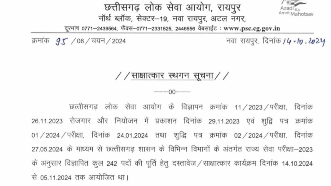 CGPSC State Service Exam 2023: स्थगित हुई छत्तीसगढ़ राज्य सेवा की साक्षात्कार परीक्षा, डीवी राउंड भी टला