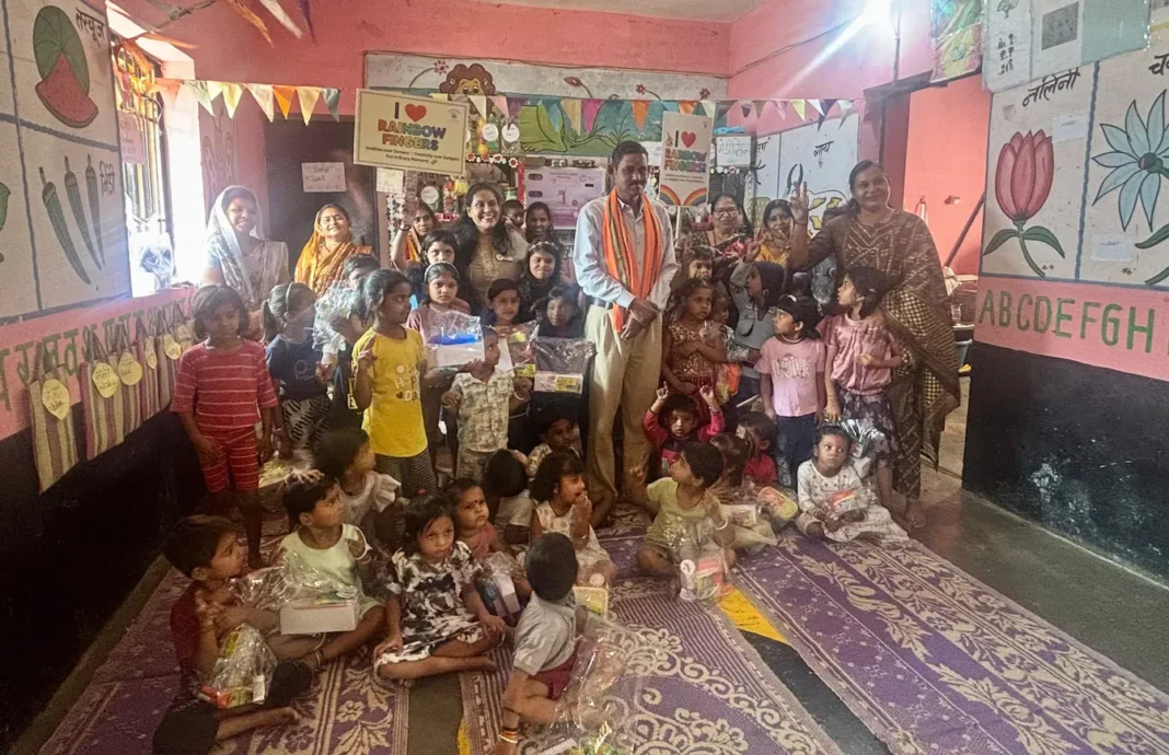 रेनबो फिंगर्स वेलफेयर फाउंडेशन द्वारा दिनांक 17 अप्रैल 2026 को आंगनबाड़ी क्रमांक 1, ग्राम बरौदा में सफलतापूर्वक दान वितरण कार्यक्रम आयोजित किया गया। इस अवसर पर 40 बच्चों को पैकेट वितरित किए गए, जिनमें पेंसिल, रबर, स्केल, क्रेयॉन्स, स्केच पेन, पानी की बोतल, टिफिन बॉक्स एवं पेंसिल बॉक्स जैसी उपयोगी सामग्री शामिल थी।